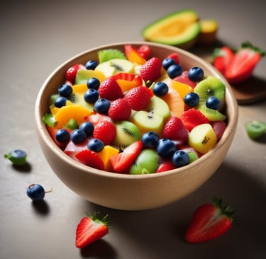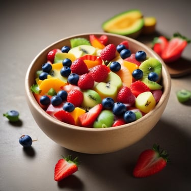 Campuran buah segar dengan saus yoghurt manis dan mint.