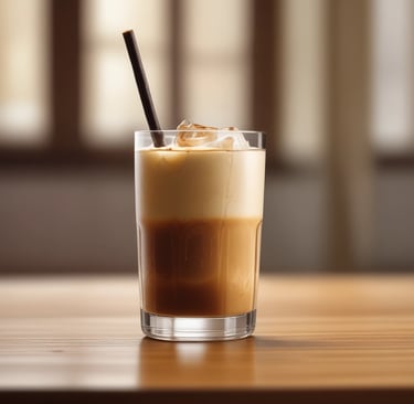 Kopi dingin dengan es batu dan gula aren, segar dan manis.